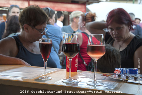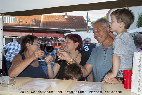 Obwohl wir erst das fünfte Mal dabei sind, haben wir uns schon zu einer Institution etabliert - unsere Stammgäste, Mitglieder und Freunde strömten wieder zu unserem Weinstand und genossen die guten Weine vom Kastanienhof in Bodenheim, die wir - wie bislang jedes Jahr - im Ausschank hatten. Warum sollten wir uns von unserem verlässlichen Partner trennen?