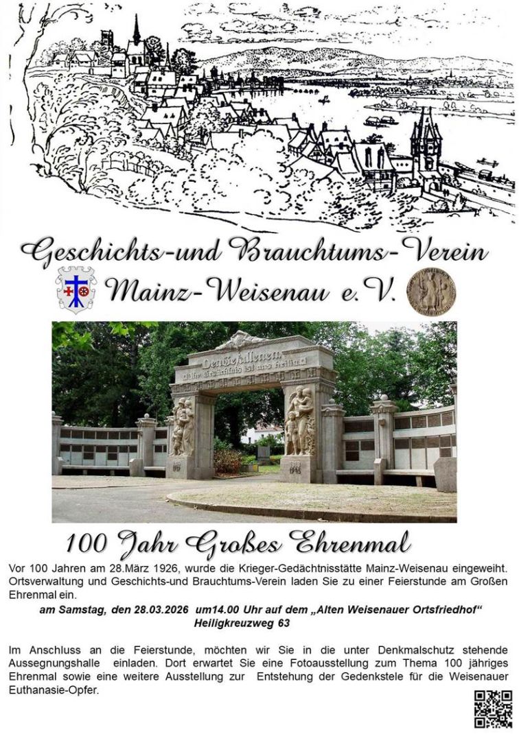 Vor 100 Jahren, am 28.03.1926, wurde die Krieger-Gedächtnisstätte in Weisenau eingeweiht.